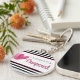 We wanted a camping themed keychain for the keys to our new RV, but they're as scarce as hen's teeth. Then I found the Zazzle site, and what a find it was! Plenty of choices from styles to colors, printing/personalization to materials available meant we could get something perfect for us. This will be used for the spare set of keys, so we don't expect too much trouble with wear and tear. The acrylic is plenty thick (maybe 1/4"), so durability appears good. We're so happy with this purchase that we're planning on buying another one for our primary keys ... this time with a photo of our actual RV. Zazzle for the win! With a plethora of font and color choices, it's hard to imagine a customer not being able to find what they want. The font and colors are exactly what we wanted, and the printing is clear. The quality is top notch.
