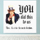 Uncle Sam is point the finger at everyone who vote for retribution over joy or thought that Biden was too goofy and Kamila hadn’t done “enough” to earn their vote. Also, every elected official who has refused to stand up for democracy. Yes, it was YOU who got us into this mess. Now, fix it over the next election or two.