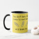 Funny coffee mug with saying, You Don’t Have To Be Crazy To Work Here...We’ll Train You! Funny, crazy paper clips decorate the mug. You can change the background on the mug from yellow if you prefer white or another color.