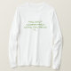 I love this shirt. I had written to the artist asking her if this picture was available on a shirt, and she wrote me back telling me where I could find the shirt. These shirts can be custom made to have a different saying. I loved this saying and went with it. The artist wrote me back later to tell me that she had seen my order go through. How's that for service? Pretty special. It's just as displayed. Perfect!