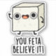 You Feta Believe It Funny Cheese Pun features a cute block of feta cheese . Perfect pun gift for family and friends who love cute food cheese puns.