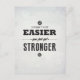 "It doesn't get easier, you just get stronger." Inspirational and Motivational Typographic Retro Style Design Postcard. The prefect card to send to a friend or family in need of some positive encouragement.