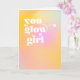 This bright greeting card features a colorful gradient design and a punny message. The front reads "You glow girl" and the inside says "You have the bright stuff" This card is perfect for offering encouragement to a friend or congratulations on a job well done.