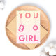 NewParkLane - Postcard, with motivational quote 'You Go Girl' in a fun, modern typography with hanging letters, in gradient yellow & pink colors.