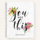Cute and feminine notebook featuring modern calligraphy with colorful floral accents. This customizable notebook will be perfect as a gift. This design is available in variety of colors and products.