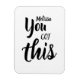 "You got this" with the lucky recipient's personalized name. Who do you know that needs a dose of inspiration and encouragement, and confirmation of their awesome abilities? Gift them this message of can-do confidence with this contemporary and minimalistic design of black typography, elegantly and boldly reminding your special person, "You got this." Set on a white background on this flexible magnet, easily personalize the design with your desired name by clicking the personalize button. 2020 © Kris Harty Step by Step Inspiration