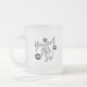 A clean, modern coffee mug featuring a minimalist black and white design.