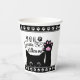 Add a cute cat touch to your birthday party with this adorable cat paper cup that says "You Gotta Be Kitten Me." The cat is black and is holding up one of its paws. There is also a background pattern of white paw prints. Touches of pink complete the kitty look. Customize with the name and age of the birthday boy or girl.
