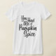 "You Had Me at Pumpkin Spice" women's t-shirt with black lettering.