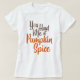 "You Had Me at Pumpkin Spice" women's t-shirt with brown & orange lettering.