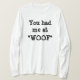 You won't have to be a dog lover to appreciate this funny dog t-shirt which reads, "You had me at 'Woof'."