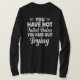 I love this shirt. I had written to the artist asking her if this picture was available on a shirt, and she wrote me back telling me where I could find the shirt. These shirts can be custom made to have a different saying. I loved this saying and went with it. The artist wrote me back later to tell me that she had seen my order go through. How's that for service? Pretty special. It's just as displayed. Perfect!