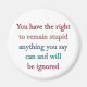 You have the right to remain stupid, anything you say can and will be ignored! - Funny sarcastic saying. Miranda Warning Spoof / Parody.