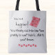 Go ahead, indulge — you finally cut into that “too fancy to use” fabric, didn’t you? This tote celebrates guilt-free joy in choosing you and your creative happiness. Personalize it with your name for that extra touch of crafty pride.