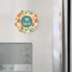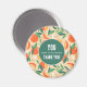 You make a difference, thank you magnet with a retro vibe. A pattern composed of sliced oranges, whole oranges, green leaves and white blossoms.