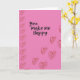 This card features a bright magenta-pink background with the message “You Make Me Happy” right in the center. The words are written in black, using a loose brush-letter look with thick and thin strokes that feel lively and direct. Along the left edge, there’s a neat vertical row of sketched hearts in a deep orange-red color. More hearts float around the right side, scattered like little notes of affection across the space. The hearts have rough, scratchy outlines and simple shading, which makes them feel honest and a bit imperfect in a sweet way. With the strong color and straightforward message, it feels like a simple way to say “I care about you” without overthinking it 🥰. It works for romance or close friendship, especially when you want your feelings to come through clearly ❤️. Hope it helps you share some Valentine’s Day feelings with someone special.
