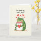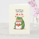 This card shows an emerald-green frog on a soft cream background, smiling wide with rosy cheeks. The frog is holding a clear jar with a big red heart inside, like it’s carefully carrying its feelings. The jar has a light pink lid with vertical stripes, adding a sweet little detail. Above the frog, several small hearts in red and pink float upward, making the scene feel full of affection. Near the top of the card, the words “You make my heart jump!” appear in a casual, hand-drawn letter style, in dark ink that stands out clearly. It feels meaningful to give because it’s simple and honest, like telling someone they make you happy just by being around. It works for romance or close friendship, especially if you want to say something tender without being too serious 🥰❤️.