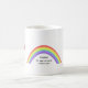 This friendship mug is decorated with a colourful rainbow and two small hearts and the words: You make the world a better place. You can personalise it with a name and, if you wish, change the words.