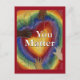 The postcard message notes, "You Matter". The art shows multi-racial hands reaching for colorful hearts as a tribute to diversity, equity, and inclusion (DEI). Art was made using acrylic washes followed by pastel on paper.