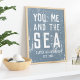 An amazing housewarming gift or cool custom addition to your coastal dwelling, our personalized frameable print features "You, Me and the Sea" in block typography on a distressed dusty blue background. Personalize with your family name and beach house year established in matching lettering at the bottom.