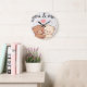 This adorable wall clock features two sweet teddy bears hugging under the words “you & me,” symbolizing love, closeness, and warmth. With its soft colors and charming illustration, it brings a cozy and romantic feeling to any space.