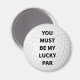 Well Designed High Quality Magnet. Colors are Vibrant Clear Excellent good size Diameter Circumference Fonts Red Folio Bold Clover Green Outline Puffy White Interior Image