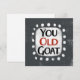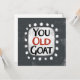 "You Old Goat" is a fun text design with a white accent shape surrounded by white whimsical textured dots.