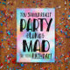 Wish someone a happy birthday with this fun, modern typography design featuring the message, "You should really PARTY like MAD on your Birthday!" Includes type accents, stars and underlines on brightly colored, watercolor background. .Inside has this message but can be customized: "Eat as much cake, ice cream and gluten as humanly possible, binge on reality tv, and stay up til the cows come home (or at least until nine o'clock). YOU DESERVE IT! HAPPY BIRTHDAY!"