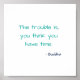 "The trouble is, you think you have time." True wisdom by Gautam Buddha - a beautiful, motivational quote on the reality of time, and our tendency of taking time for granted. A great motivational poster for your walls, room, office, den, dorm room. Makes a great gift for friends & family, for graduation, birthday, christmas, holidays, and more.