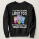 You would be loud too if i would pulling your Bing Sweatshirt