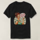 My 11 yo wore adult XL (5’7” 165#). The 8yo is small framed. She wore adult small and tied it in the back. Grandma wore adult large with long sleeve shirt underneath. Tall girl adult medium. Dark haired male adult large. Good quality dark Heather gray, Gildan brand shirt. -it was next up from basic choice and cost about $20 per shirt. Not too thick or thin. Washed and dried well, no major shrinkage. Not see-through. Can wear a bra under it fine. Screen print is just as shown and well done, front and back.