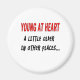 Magnet with a funny text phrase that says"Young at heart....a little older in other places". Sure to get lots of looks, comments and laughs.
