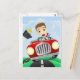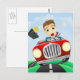 Young businessman driving fast classic car postcard