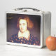 This is a standard metal lunchbox that appears to work just fine. We designed this box ourselves with an uploaded photo and custom text on the front and back. It looks absolutely beautiful except the front of the lunchbox is not centered like it shows in the photo. The print borders don't align with the inset flat part of the box where the preview photo online showed it perfectly centered in there. The back looks nice and centered though.