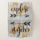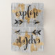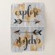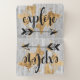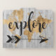 den text phrase and a gold map of the world over a gray plank background.. Artist: Studio W