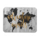 den text phrase and a black map of the world over a gray plank background.. Artist: Studio W