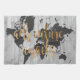 den text phrase and a black map of the world over a gray plank background.. Artist: Studio W
