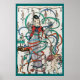 YOUNG GIRL WITH COLORFUL RIBBON SWIRLS AND CUPID POSTER