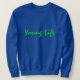 Deep royal colored sweatshirt with lime green lettering