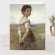 Vintage image of a young shepherdess wearing a simple peasant dress with an overskirt and bare feet. Her flock grazes nearby in an open landscape. From an original 19th century (1885) painting by Adolphe Bouguereau. All Rights Reserved © 2014 padre art