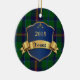 Colorful plaid ceramic ornament, with the traditional blue, green, red and yellow clan Young tartan plaid pattern, as a background. Graphics of a blue and gold tone shield like plaque, has custom blue and golden yellow text ready to personalize. Great looking family heirloom ornament. Makes a great gift ornament and decoration for other uses around the house.