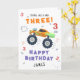 Young Wild And Three 3rd Birthday Kids Monster Car Card