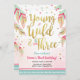 Young Wild and Three Feathers Pink Gold Birthday Invitation