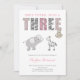 Young, Wild and THREE Girl Zoo 3rd Birthday Party Invitation