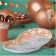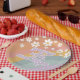 Young Wild and Three Retro Rainbow birthday plates with daisies.