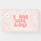 Young Wild One retro Daisy Pink birthday Banner