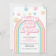 Young Wild and Three Retro rainbow inspired 3rd birthday invitation with 70's style fonts and colors.