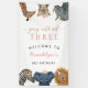 Cute and modern safari theme kid's birthday party welcome banner featuring illustration of lion, elephant, zebra, giraffe, snow leopard, and rhino with pink flowers, crowns, and party hats. Perfect for a girl's 3rd birthday.