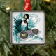 Young woman Dj Using Turntable in Nightclub Metal Ornament