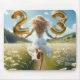 Young Woman Running With Birthday Balloons Mouse Pad